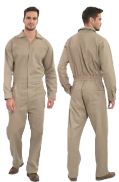 OVEROL INDUSTRIAL de gabardina con cierre de plástico doble acción, resorte en cintura, puño camisero, cuatro bolsas frontales y dos bolsas traseras.
