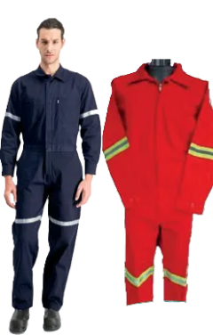 Overol Industrial de gabardina con cierre de plástico doble acción, resorte en cintura, puño camisero, cuatro bolsas frontales y dos bolsas traseras con reflejante